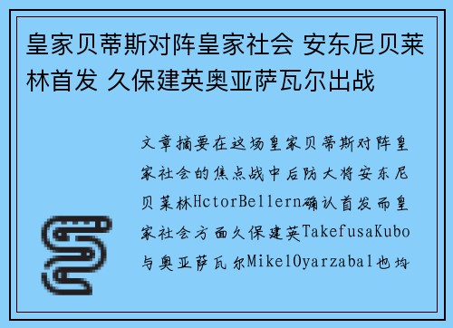 本篇文章将围绕阿隆索对维尼修斯在比赛中的关键表现的盛赞展开讨论,尤其是在他表示“德比战将等到明天再去考虑”这一观点的背景下进行深入分析。首先,我们将简要概述阿隆索的观点,介绍他对维尼修斯的高度评价,以及这一观点在当前足球环境下的意义。接下来,文章将从四个方面详细探讨这一话题,包括:阿隆索的个人经历和眼光、维尼修斯的技术特点与优势、维尼修斯在本场比赛中的关键表现、以及阿隆索为何强调将德比战推迟到明天...